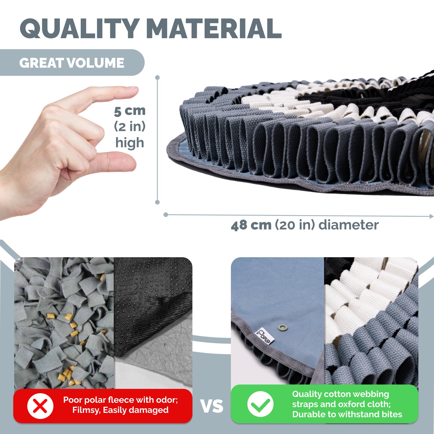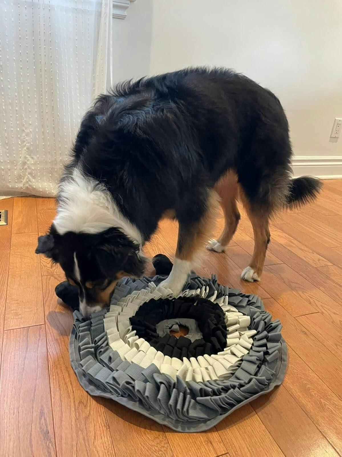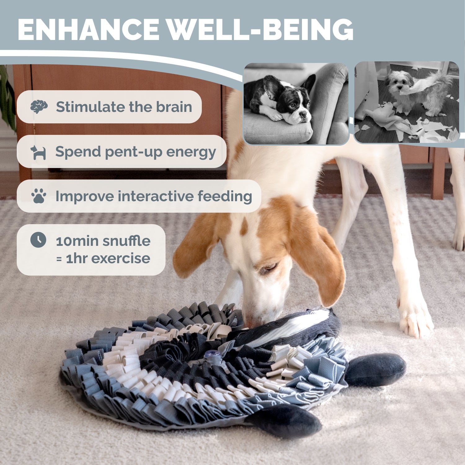 The Hide & Seek Snuffle Mat taps into dogs' natural foraging instincts, offering mental stimulation and hours of engaging play. Crafted from soft plush, durable cotton fabric, and enriched with crinkle and squeaker elements, it provides multiple ways to interact and explore, making every play session exciting and rewarding.