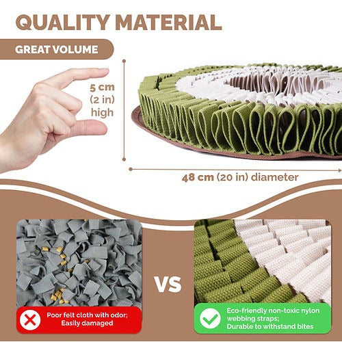 - The 48cm diameter mat boasts a substantial 5.5cm thickness, the volume provides enough hidden space to forage for all breeds and sizes.