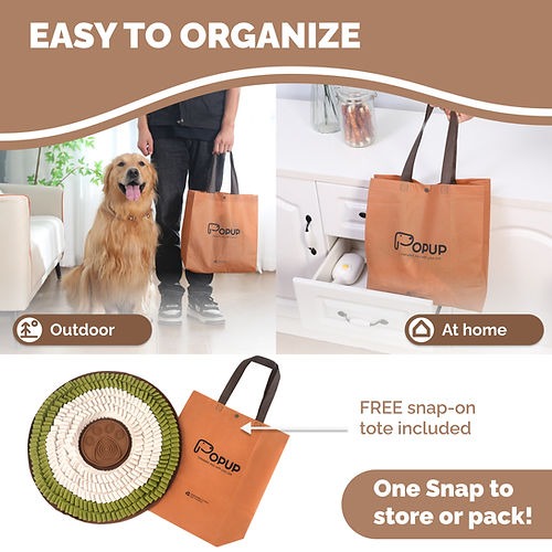 - For convenient organization, utilize the POPUPJOYS Brand tote bag to store the mat or other pet essentials, tidying up your space effortlessly.