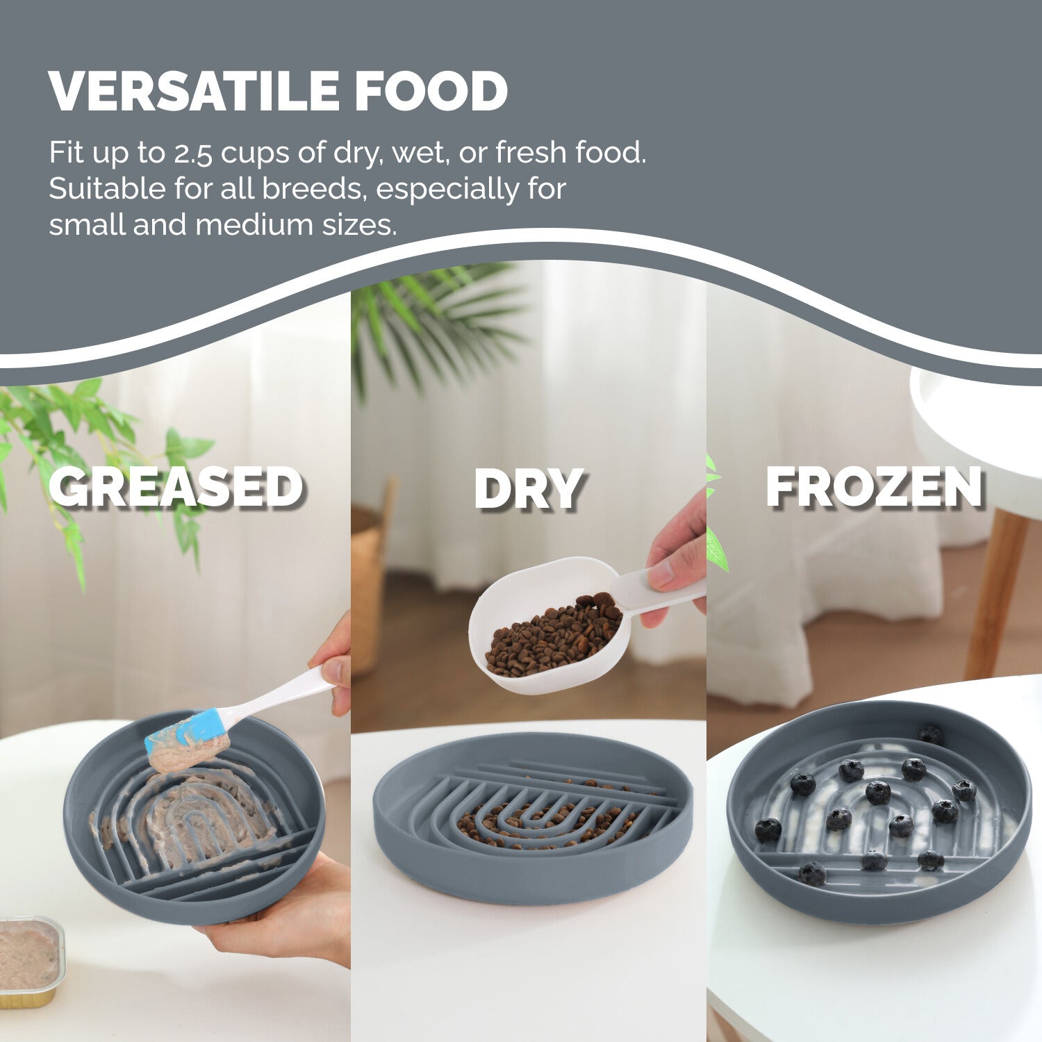 Crafted from durable food-grade silicone, the slow feeder is tailored to promote healthier eating habits and prevent common digestion issues in your beloved pets. The large strong suction at the back can keep the bowl stable from being easily moved around or flipped over. Say goodbye to nasty bowls by quickly brushing it after every use with the brush to avoid any deposit. The bowl is also dishwasher safe for deep cleaning.